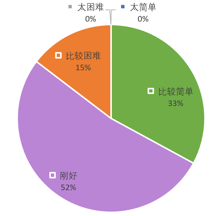 从同学的反馈中可以看出,同学们对于课程整体上是较为满意的。大部分同学感觉课程速度和难度都很合适,讲解效果也比较清晰。有部分同学感觉难度较大,不容易听懂,可以观看回放,也可以与讲师交流,以解答疑惑。